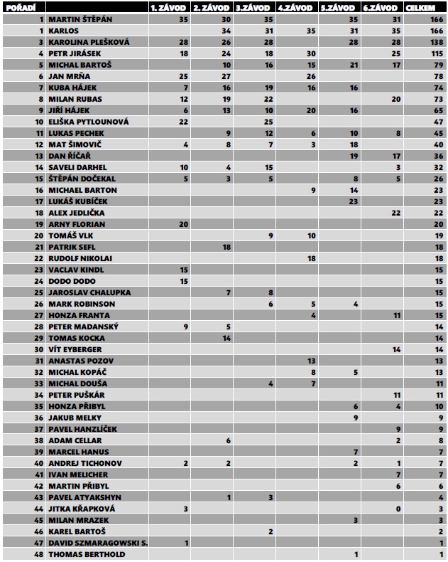 Každý jednotlivec sbírá body do žebříčku pro celý rok.